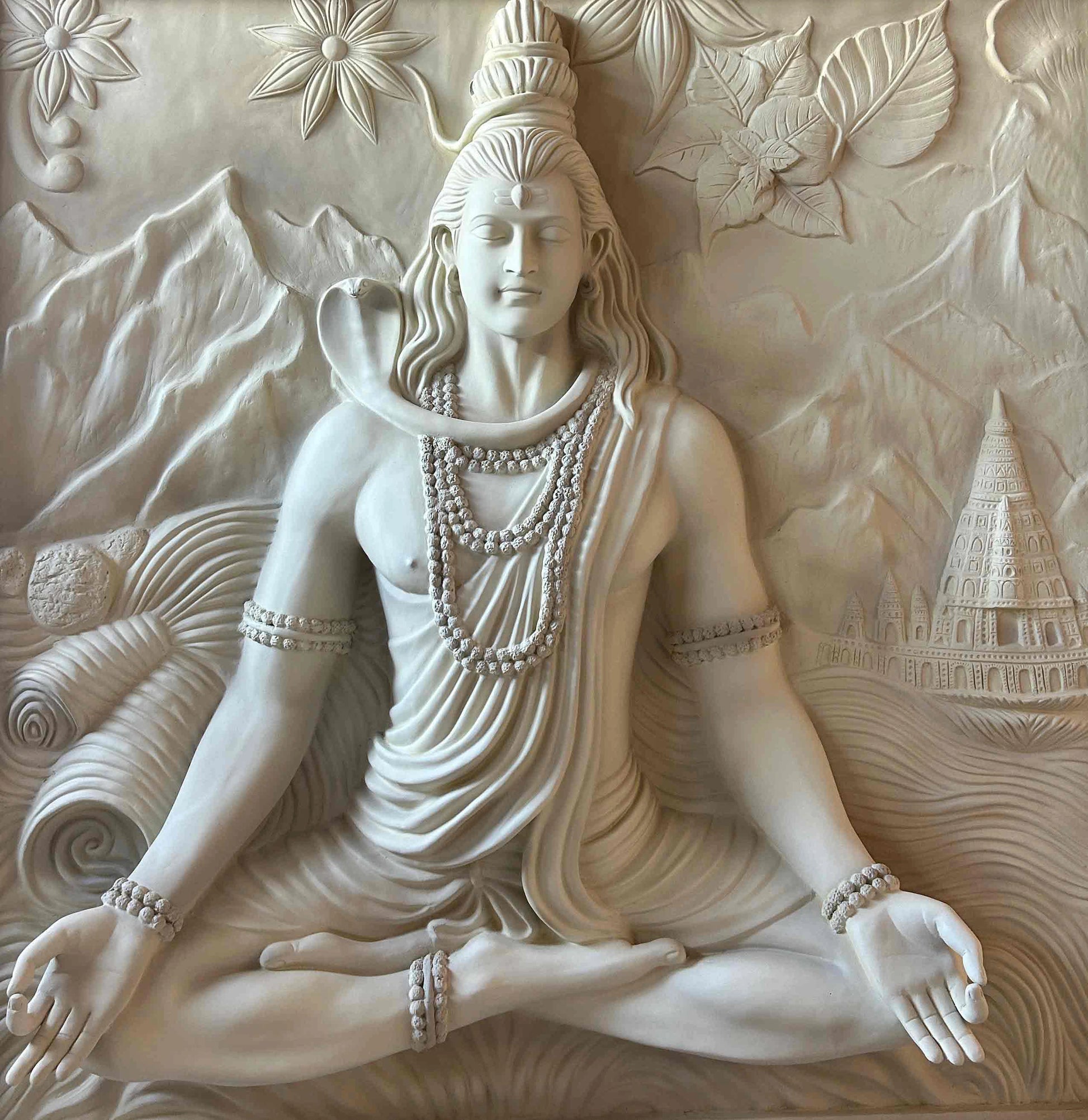 Lord Shiva Wall Mural – Meditative Pose | High-Relief Sculpture